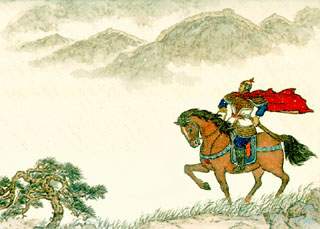 “虏塞兵气连云屯,战场白骨缠草根。”诗意:敌营阴沉杀气直冲云霄,战场上白骨还缠着草根。这两句是说,胡虏作乱,边境地区战云密布,戍边的将士,屡屡与敌接战,血战沙场,互有伤亡,弃骨荒野。借战场景象之惨淡,暗示战斗异常艰苦,必有重大伤亡,烘托气氛的手法称妙。 出自岑参《轮台歌奉送封大夫出师西征》 轮台城头夜吹角,轮台城北旄头落。 羽书昨夜过渠黎,单于已在金山西。 戍楼西望烟尘黑,汉军屯在轮台北。 上将拥旄西出征,平明吹笛大军行。 四边伐鼓雪海涌,三军大呼阴山动。 虏塞兵气连云屯,战场白骨缠草根。 剑河风急云片阔,沙口石冻马蹄脱。 亚相勤王甘苦辛,誓将报主静边尘。 古来青史谁不见,今见功名胜古人。 注 伐鼓:一作“戍鼓”。雪海:西域湖泊名,在天山主峰与伊塞克湖之间。 三军:泛指全军。阴山:在今内蒙古自治区中部。 虏塞:敌国的军事要塞。兵气:战斗的气氛。 连云屯:形容战争气氛弥漫,上与云彩聚合在一起。 剑河:地名,在今新疆境内。一说即今俄罗斯境内的叶尼赛河上游。 沙口:一作“河口”,地理位置待考。或指剑河河口。 亚相:指御史大夫封常清。在汉代御史大夫位置仅次于宰相,故称亚相。勤王:勤劳王事,为国效力。 参考译文 轮台城头夜里吹起号角,轮台城北旄头星正降落。 军书昨夜连夜送过渠黎,单于已在金山以西入侵。 从哨楼向西望烟尘滚滚,汉军就屯扎在轮台北境。 上将手持符节率兵西征,黎明笛声响起大军起程。 战鼓四起犹如雪海浪涌,三军呐喊阴山发出共鸣。 敌营阴沉杀气直冲云霄,战场上白骨还缠着草根。 剑河寒风猛烈大雪鹅毛,沙口石头寒冷马蹄冻脱。 亚相勤于王政甘冒辛苦,立誓报效国家平定边境。 古来青垂史名屡见不鲜,如今将军功名胜过古人。 ![]() 赏析 《轮台歌奉送封大夫出师西征》是唐代诗人岑参送别封常清西征之作,是写边地战争的诗歌。此诗直写军情战事,写战局之凶险与气候之严酷,反衬出唐军誓师出征之声威与高昂士气,表现出全军将士坚韧不拔、雄视一切的豪迈气概。起首六句先写战前两军对垒的紧张状态;紧接四句写白昼出师接仗;然后写奇寒与牺牲,讴歌将士抗敌奋不顾身;末四句照应题目,预祝凯旋,以颂扬作结。全诗有描写,有烘托,有想象,有夸张,手法多样,结构严谨,抑扬顿挫,情调激昂,充满浪漫主义激情和边塞生活的气息,生动地反映了盛唐时期蓬勃向上的时代精神。 这首七古与《走马川行奉送封大夫出师西征》内容不同,《走马川行奉送封大夫出师西征》未写战斗,是通过将士顶风冒雪的夜行军情景烘托必胜之势;此诗则直写战阵之事,具体手法也有所不同。全诗可分为四层。 起首六句写战斗以前两军对垒的紧张状态。虽是制造气氛,却与《走马川行奉送封大夫出师西征》从自然环境落笔不同。那里是飞沙走石,暗示将有一场激战;而这里却直接从战阵入手:军府驻地的城头,角声划破夜空,呈现出一种异样的沉寂,暗示部队已进入紧张的备战状态。据《史记·天官书》:“昴为髦头(旄头),胡星也”,古人认为旄头跳跃主胡兵大起,而“旄头落”则主胡兵覆灭。“轮台城头夜吹角,轮台城北旄头落”,连用“轮台城”三字开头,造成连贯的语势,烘托出围绕此城的战时气氛。把“夜吹角”与“旄头落”两种现象联系起来,既能表达一种敌忾的意味,又象征唐军之必胜。气氛酝足,然后倒插一笔:“羽书昨夜过渠黎(在今新疆轮台县东南),单于已在金山西”,交待出局势紧张的原因在于胡兵入寇。果因倒置的手法,使开篇奇突警湛。“单于已在金山西”与“汉兵屯在轮台北”,以相同句式,两个“在”字,写出两军对垒之势。敌对双方如此逼近,以至“戍楼西望烟尘黑”,写出一种濒临激战的静默。局势之紧张,大有一触即发之势。 紧接四句写白昼出师与接仗。手法上与《走马川行奉送封大夫出师西征》写夜行军大不一样,那里是衔枚急走,不闻人声,极力描写自然;而这里极力渲染吹笛伐鼓,是堂堂之阵,正正之旗,突出军队的声威。开篇是那样奇突,而写出师是如此从容、镇定,一张一弛,气势益显。作者写自然好写大风大雪、极寒酷热,而这里写军事也是同一作风,将是拥旄之“上将”,三军则写作“大军”,士卒呐喊是“大呼”。总之,“其所表现的人物事实都是最伟大、最雄壮的、最愉快的,好像一百二十面鼓,七十面金钲合奏的鼓吹曲一样,十分震动人的耳鼓。和那丝竹一般细碎而悲哀的诗人正相反对。”(徐嘉瑞《岑参》)于是军队的声威超于自然之上,仿佛冰冻的雪海亦为之汹涌,巍巍阴山亦为之摇撼,这出神入化之笔表现出一种所向无敌的气概。 “三军大呼阴山动”,似乎胡兵亦将败如山倒。殊不知下面四句中,作者拗折一笔,战斗并非势如破竹,而斗争异常艰苦。“虏塞兵气连云屯”,极言对方军队集结之多。诗人借对方兵力强大以突出己方兵力的更为强大,这种以强衬强的手法极妙。“战场白骨缠草根”,借战场气氛之惨淡暗示战斗必有重大伤亡。以下两句又极写气候之奇寒。“剑河”、“沙口”这些地名有泛指意味,地名本身亦似带杀气;写风曰“急”,写雪片曰“阔”,均突出了边地气候之特征;而“石冻马蹄脱”一语尤奇:石头本硬,“石冻”则更硬,竟能使马蹄脱落,则战争之艰苦就不言而喻了。作者写奇寒与牺牲,似是渲染战争之恐怖,但这并不是他的最终目的。作为一个意
