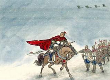 “行人刁斗风沙暗,公主琵琶幽怨多。”这两句是说,大漠风沙弥漫,一片昏黑,只听见军营中巡夜的打更声和如泣如诉幽怨悲凉的琵琶声。诗句描写风沙昏暗的艰苦行军生活,点明了战士们悲怨愤慨的厌战情绪。感情深沉,意境悲凉。 出自李颀《古从军行》 白日登山望烽火,黄昏饮马傍交河。 行人刁斗风沙暗,公主琵琶幽怨多。 野云万里无城郭,雨雪纷纷连大漠。 胡雁哀鸣夜夜飞,胡儿眼泪双双落。 闻道玉门犹被遮,应将性命逐轻车。 年年战骨埋荒外,空见蒲桃入汉家。 注 行人:出征战士。刁斗:古代军中铜制炊具,容量一斗。白天用以煮饭,晚上敲击代替更柝。 公主琵琶:汉武帝时以江都王刘建女细君嫁乌孙国王昆莫,恐其途中烦闷,故弹琵琶以娱之。 参考译文 白天登山观察报警的烽火台,黄昏时牵马饮水靠近交河边。 昏暗的风沙传来阵阵刁斗声,如同汉代公主琵琶充满幽怨。 旷野云雾茫茫万里不见城郭,雨雪纷纷笼罩着无边的沙漠。 哀鸣的胡雁夜夜从空中飞过,胡人士兵个个眼泪双双滴落。 听说玉门关已被挡住了归路,战士只有追随将军拼命奔波。 年年战死的尸骨埋葬于荒野,换来的只是西域葡萄送汉家。 ![]() 赏析 《古从军行》是唐代诗人李颀的作品。此诗以汉喻唐,借写汉武帝的开边,讽刺当时唐玄宗的开边,充满反战思想。开首先写紧张的从军生活:白日黄昏繁忙,夜里刁斗悲呛,琵琶幽怨,景象肃穆凄凉。接着渲染边陲的环境:军营所在,四顾荒野,大雪荒漠,夜雁悲鸣,一片凄冷酷寒景象。最后写如此恶劣环境,本应班师回朝,然而皇上不准;而千军万马拼死作战的结果,却只换得葡萄种子归国,足见君王之草菅人命。全诗句句蓄意,步步逼紧,最后才画龙点睛,着落主题,显出其讽刺笔力。 诗开首先写紧张的从军生活。白天爬上山去观望四方有无举烽火的边警;黄昏时候又到交河边上让马饮水(交河在今新疆吐鲁番西面,这里借指边疆上的河流)。三、四句的“公主琵琶”是指汉朝细君公主远嫁乌孙国时所弹的琵琶曲调,当然,这不会是欢乐之声,而只是哀怨之调。一、二句写“白日”、“黄昏”的情况,三、四句接着描绘夜晚的情况:风沙弥漫,一片漆黑,只听得见军营中巡夜的打更声和那如泣如诉的幽怨的琵琶声。景象非常肃穆而凄凉。“行人”,是指出征将士,这样就与下一句的公主出塞之声,引起共鸣了。 接着,诗人又着意渲染边陲的环境。军营所在,四顾荒野,无城郭可依,“万里”极言其辽阔;雨雪纷纷,以至与大漠相连,其凄冷酷寒的情状亦可想见。以上六句,写尽了从军生活的艰苦。接下来,似乎应该正面点出“行人”的哀怨之感了。可是诗人却别具机杼,背面傅粉,写出了“胡雁哀鸣夜夜飞,胡儿眼泪双双落”两句。胡雁胡儿都是土生土长的,尚且哀啼落泪,更不必说远戍到此的“行人”了。两个“胡”字,有意重复,“夜夜”、“双双”又有意用叠字,有着烘云托月的艺术力量。 面对这样恶劣的环境,没有人不想班师复员。可是办不到。“闻道玉门犹被遮”一句,笔一折,似当头一棒,打断了“行人”思归之念。据《史记·大宛列传》记载,汉武帝太初元年,汉军攻大宛,攻战不利,请求罢兵。汉武帝闻之大怒,派人遮断玉门关,下令:“军有敢入者辄斩之。”这里暗刺当朝皇帝一意孤行,穷兵黩武。随后,诗人又压一句,罢兵不能,“应将性命逐轻车”,只有跟着本部的将领“轻车将军”去与敌军拼命,这一句其份量压倒了上面八句。下面一句,再接再厉。拼命死战的结果无外乎“战骨埋荒外”。诗人用“年年”两字,指出了这种情况的经常性。全诗一步紧一步,由军中平时生活,到战时紧急情况,最后说到死,为的是什么?这十一句的压力,逼出了最后一句的答案:“空见蒲桃入汉家。” “蒲桃”就是葡萄。汉武帝时为了求天马(即阿拉伯马),开通西域,便乱启战端。当时随天马入中国的还有蒲桃和苜蓿的种子,汉武帝把它们种在离宫别馆之旁,弥望皆是。这里“空见蒲桃入汉家”一句,用此典故,讥讽好大喜功的帝王,牺牲了无数人的性命,换到的只有区区的蒲桃而已。言外之意,可见帝王是怎样的草菅人命了。 此诗全篇一句紧一句,句句蓄意,步步逼紧,直到最后一句,才画龙点睛,着落主题,显出此诗巨大的讽谕力。诗巧妙地运用音节来表情达意。第一句开头两字“白日”都是入声,具有开场鼓板的意味。三、四两句中的“刁斗”和“琵琶”,运用双声,以增强音节美。中段转入声韵,“双双落”是江阳韵与入声的配合,犹如云锣与鼓板合奏,一广一窄,一放一收,音节最美。中段入声韵后,末段却又选用了张口最大的六麻韵。以五音而论,首段是羽音,中段是角音,末段是商音,音节错落,各极其致。全诗先后用“纷纷”、“夜夜”、“双双”、“年年”等叠字,不但强调了语意,而且叠字叠韵,在音节上生色不少。