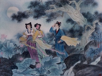 “随意春芳歇,王孙自可留。”的诗意:春日的芳菲不妨任随它消歇,秋天的山中王孙自可以久留。 出自王维《山居秋暝》 空山新雨后,天气晚来秋。 明月松间照,清泉石上流。 竹喧归浣女,莲动下渔舟。 随意春芳歇,王孙自可留。 注 竹喧:竹林中笑语喧哗。喧:喧哗,这里指竹叶发出沙沙声响。浣(huàn)女:洗衣服的姑娘。浣:洗涤衣物。 随意:任凭。春芳:春天的花草。歇:消散,消失。 王孙:原指贵族子弟,后来也泛指隐居的人。留:居。此句反用淮南小山《招隐士》:“王孙兮归来,山中兮不可久留”的意思,王孙实亦自指。反映出无可无不可的襟怀。 译文1: 空寂的终南山刚下了一场雨后,秋天的黄昏时候降临了。 明亮的月光在松树间照耀,清澈的泉水在岩石上流淌。 竹林里传来喧闹声是洗衣的女子回来了,水上的荷叶摇动是打鱼的渔民下船了。 任凭春天的芳香花草消逝,我自己还是可以居留在这里。 译文2: 一场新雨过后,青山特别晴朗,秋天的傍晚,天气格外的凉爽。 明月透过松林撒落斑驳的静影,清泉悄悄地在大石上缓缓流淌。 竹林传出归家洗衣女的谈笑声,莲蓬移动了,渔舟正上岸收网。 尽管春天的芳菲已经消散而去,游子在秋色中,自可留连徜徉。 译文三 空旷的群山沐浴了一场新雨,夜晚降临使人感到已是初秋。 皎皎明月从松隙间洒下清光,清清泉水在山石上淙淙淌流。 竹林喧响知是洗衣姑娘归来,莲叶轻摇想是上游荡下轻舟。 春日的芳菲不妨任随它消歇,秋天的山中王孙自可以久留。 ![]() 赏析 这首诗写初秋时节山居所见雨后黄昏的景色,当是王维隐居终南山下辋川别业(别墅)时所作。 此诗描绘了秋雨初晴后傍晚时分山村的旖旎风光和山居村民的淳朴风尚,表现了诗人寄情山水田园并对隐居生活怡然自得的满足心情,以自然美来表现人格美和社会美。全诗将空山雨后的秋凉,松间明月的光照,石上清泉的声音以及浣女归来竹林中的喧笑声,渔船穿过荷花的动态,和谐完美地融合在一起,给人一种丰富新鲜的感受。它像一幅清新秀丽的山水画,又像一支恬静优美的抒情乐曲,体现了王维诗中有画的创作特点。 “空山新雨后,天气晚来秋。”点题。诗人将“空山”置于句首,反映出自己独特的审美感受。“空”即寂静,一个“新”字,说明刚刚下了一场雨,空气不再污染,简直把人的五脏六腑都洗刷干净了。又加上正当清秋季节,日暮时分,为全诗凝造了一种清幽的背景。 颔联巧出机杼,“明月松间照,清泉石上流。”一动一静、一光一声,前者诉之于人的视觉,后者敲击人的耳鼓,明月清晖,声音清脆,与往常不同的是,今日的月光更加明亮,今日的声音更加响亮,因为是雨后的缘故,月照松林,更见其幽,石上溢以泉声,更显其静……如果用绘画的语言来说,诗人巧妙着色,很有功底。明月给山间万物铺上一层银辉,特别是在这样清秋季节,那种银色必然是跳动的、带着些许寒冷和爽朗,松间斑驳的光影,撒落于清泉之上,让生命的光辉更具有一种活力。难怪苏轼评价王维的诗:“味摩诘之诗,诗中有画,味摩诘之画,画中有诗”? 全诗归具情趣的是项联:“竹暄归浣女,莲动下渔舟”。诗人步入村中山道,忽然从竹林中传来了一阵喧闹声,仔细一听,恍然大悟,那是一群妇女洗完了衣服在回家,也许是劳动给她们带来了乐趣,也许是没有官场的繁文缛节、无牵无挂……她们嬉笑、打闹着,使山村的夜晚充满活力,密密的荷叶丝丝晃动,打渔的人也收网而归,他们轻轻地划着小舟,生怕别人听见声响似的,与妇女们的喧闹形成强烈的对照。多么具有生活情趣的场景,让诗人信手拈来,点染成画! 诗的尾联:“随意春芳歇,王孙自可留”是抒情。意思是说,任凭春花衰歇,但这景物还是如此让人留恋,诗人归隐之间停留于笔墨之间。诗人用典抒情,这也是古人常用的一种表现手法,其妙处在于含蓄典雅。这两句用了《楚辞•招隐士》中:“王孙游兮不归,春草生兮萋萋”和“王孙兮归来,山中兮不可以久留”的典故。这个典故愿意是说:春天过去了,春花已谢,春草繁茂,可王孙还没有回来,王孙回来吧,山里太寂寞了冷清了,不能在那里长久地居住。可诗人置身于秋天傍晚的山村,感到是那样地惬意,在愿意回到人事扰攘的市朝中去,诗人反用其典,把自己留恋山林的心情含蓄的表现出来,而且与上边所写的山村景色十分协调。