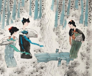“妇姑相唤浴蚕去,闲着中庭栀子花。”这两句是说,仲春时节,天下着雨,妇姑彼此招呼一同去冒雨浴蚕。农家少闲月,浴蚕季节倍加忙碌,男耕女蚕,自然没有闲人闲时,唯独闲着栀子花在那里散发清香。同时喻意于春深农忙,花无人赏,无人有闲暇顾及“同心”之事。诗句语言活泼,新鲜生动,构思巧妙,有浓郁的乡土气息。结语双关,含蓄不发,令人称妙。 出自王建《雨过山村》 雨里鸡鸣一两家,竹溪村路板桥斜。 妇姑相唤浴蚕去,闲着中庭栀子花。 注 浴蚕:指古时用盐水选蚕种,时在仲春。 栀子花:一名“同心花”,诗中向来用作爱情之象征,故少女少妇很喜采撷这种素色的花朵。 闲着:农人忙着干活,没有人欣赏盛开的栀子花。 参考译文 雨中传来鸡鸣,山村里依稀一两户人家。村路竹溪之上,一条板桥斜横。婆媳相唤。一起去选蚕种。只有那栀子花开,独自摇曳庭院中。 ![]() 简析 《雨过山村》是由唐代诗人王建所写的一首七言绝句。这首诗写于王建游玩山村时所作,描绘了山村人民的生活。前两句通过对景物的描来表达山村的静谧。第三句写妇女冒雨浴蚕,表现农家之忙。第四句通过对花的“闲”来反衬当地人的忙。全诗描绘了一幅清新秀丽的山村农忙图景。 全诗处处扣住山村景象,从景写到人,从人写到境;农事的繁忙,山村的神韵,皆蕴于一个“闲”字之中。它是全篇之“眼”,着此一字而境界全出。作者写雨过山村所见情景,富有诗情画意,又充满劳动生活的气息,同时也表达了一种对乡村生活的喜爱之情。