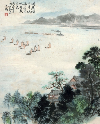 洞庭阻风 张泌(一作许棠) 空江浩荡景萧然,尽日菰蒲泊钓船。 青草浪高三月渡,绿杨花扑一溪烟。 情多莫举伤春目,愁极兼无买酒钱。 犹有渔人数家住,不成村落夕阳边。 注 ⑴空江:洞庭湖水面横无际涯,尽日因风被阻,所以显得江面空旷。浩荡:指风吹浪涌,白波浩荡记。景萧然:这是同无风时比较,无风时江面百舸争流,异常热闹,而今船只避风,江面显得萧然。 ⑵菰(gū):即艾白;蒲(pú):水草,孤与蒲,皆生长在浅水处。泊钓船:钓船停在港湾中。 ⑶青草:湖名,今在湖南省岳阳县西南,接湘阴县界,因湖南省有青草山,而且湖中多青草,故名。青草湖向来就和洞庭湖并称。一湖之内,有沙洲间隔,一名青草,一名洞庭。 ⑷情多:指多愁善感的人。莫举伤春目:不要放眼看那使人伤心的春天的景象。 ⑸兼:又加上。 ⑹渔人:打渔的人。夕阳边:在夕阳洒落的岸边。 名句赏析 “情多莫举伤春目,愁极兼无买酒钱。”的诗意:多情怀绪莫要观看伤春景,无法消愁只因没有买酒钱。这两句是说,诗人面对洞庭湖春日美好的风光,却动起了愁情,以致不愿举目赏景,他在愁自己的穷困,囊中羞涩,连买酒钱都拿不出来。对景伤情,其情可哀。“兼无”二字蕴含丰富,既言潦倒失意,又言穷困之状,隐含胸中之愤怨。 参考译文 江面上浩荡荡景色萧萧然,终日里只看见菰蒲钓鱼船。 青草湖里浪高三月从此过,杨花飞絮扑面江上风烟满。 多情怀绪莫要观看伤春景,无法消愁只因没有买酒钱。 极远处还布那几户渔家在,不成村落散住在那夕阳边。 ![]() 赏析 这首诗描写了洞庭的风光,并于诗歌中寄寓了自己的伤春情怀。诗人因风大阻于洞庭湖边,首联通过空江的萧然景致与诗人镇日地面对菰蒲,一种寂寞抑郁的情感油然而生。其后写诗人坐在钓船内所目睹的舱外情景。描写洞庭湖边周围的萧然景致,在首颔两联的写景后,开始抒情感叹,如果是个有着坎坷经历又极易感伤的人,遇到这种情形,切不可举目远眺,避免产生伤春之心,最后以景作结。诗人从自己的感伤情绪中摆脱出来。全诗写景、抒情、叙事三者融为一体,借助写景来衬托情怀。 这是诗人途经洞庭遇风路阻时所写的一首诗,诗歌描写了洞庭的风光,并于诗歌中寄寓了自己的伤春情怀。 “空江浩荡景萧然,尽日菰蒲泊钓船”,诗人因风大阻于洞庭湖边,举目远眺,但见与洞庭湖相连的江面上空荡荡的,天气阴沉,景物萧索,使人顿生抑郁之情,风大浪高,无法渡过洞庭,只得枯坐在钓船之内,尽日相伴的只有岸边的菰蒲。“尽日”二字,表明了诗人因风路阻而无法行路的无可奈何心情。首联通过空江的萧然景致与整日地面对菰蒲,一种寂寞抑郁的情感油然而生,为下面的进一步描写作了铺垫。 “青草浪高三月渡,绿杨花扑一溪烟”,是写诗人坐在钓船内所目睹的舱外情景。诗人举目向青草湖方向望去,暮春三月的风特别大,湖面被吹得波涌浪翻,岸上的杨花也被吹得四处飞扬,迷蒙一片,把流入洞庭的河汊上空都给遮掩住了。这两句是描写洞庭湖边周围的萧然景致,是承接首联中所描绘的氛围而来的。一个“扑”字写出了柳絮逐风而舞的状态,极具动感。《唐诗别裁》注云:“夜泊洞庭湖港汉,故有‘绿杨花扑一溪烟’之句。否则风景全不合矣,玩末句自明。”一边是白浪层层,一边是白絮纷纷,水上陆上尽是白色,这种冷色调更添了几许凄凉。首句直接写风,连日的风使水面空空荡荡,足见风之大,而这两句则从侧面来写风之大,正是因为有风,才有“浪高”,才有“花扑”,前后两联从不同角度入手,将洞庭暮春风起时的景象描绘得淋漓尽致。 “情多莫举伤春目,愁极兼无买酒钱”,在首颔两联的写景后,颈联的这两句承上开始抒情。路阻于洞庭之滨,又遇上了不作美的天公,诗人感叹道,如果是个有着坎坷经历又极易感伤的人,遇到这种情形,切不可举目远眺,显然这是诗人自身的经验之谈,因为诗人已经远眺了并已生了伤春之心,而且更令其尴尬的是,愁闷已极的诗人此刻身上却没有多余的钱可以沽酒来解愁。沈德潜在《说诗语》中对律诗的五六两句是这样要求的:“五六必耸然挺拔,别开一境,上既和平,至此必须振起也。”这两句由景转情,确有别开一境、耸然挺拔的感觉。 “犹有渔人数家住,不成村落夕阳边”,诗歌的最后一联以景作结。诗人从自己的感伤情绪中摆脱出来,举目远眺,只见此刻已经夕阳西下,虽说景色萧然,但仍有几家渔人的房子,零零落落地散布在远处,只是看上去不成村落而已。这里的零星房屋,远方的西下夕阳,同样也给人以萧然的感觉,当然,也是因风受阻于郊外的孤身旅人抑郁心理的折射。 该诗以景传情,以情染景,情景交融。这首诗中景物本身就含有不尽的情意,而诗人的悲愁又给景物罩上了一层惨淡的色彩。因此,饶有余味,绵绵不尽。在结构章法上,所见与所感交互递现,诗脉清晰,不失为一首有特色的律诗。