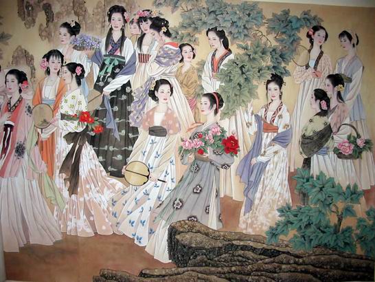杨花雪落覆白苹,青鸟飞去衔红巾。 译文:白雪似的杨花飘落覆盖浮萍,使者象传情的青鸟勤送红巾。 《丽人行》 杜甫 三月三日天气新,长安水边多丽人。 态浓意远淑且真,肌理细腻骨肉匀。 绣罗衣裳照暮春,蹙金孔雀银麒麟。 头上何所有? 翠微榼叶垂鬓唇。 背后何所见? 珠压腰衱稳称身。 就中云幕椒房亲,赐名大国虢与秦。 紫驼之峰出翠釜,水精之盘行素鳞。 犀筋厌饫久未下,鸾刀缕切空纷纶。 黄门飞鞚不动尘,御厨络绎送八珍。 箫鼓哀吟感鬼神,宾从杂遝实要津。 后来鞍马何逡巡,当轩下马入锦茵。 杨花雪落覆白苹,青鸟飞去衔红巾。 炙手可热势绝伦,慎莫近前丞相嗔! ![]() 注释: 三月三日为上巳日,唐代长安士女多于此日到城南曲江游玩踏青。吴自牧《梦梁录》:三月三日上巳之辰,曲水流觞故事,起于晋时。唐朝赐宴曲江,倾都锲饮踏青。 态浓:姿态浓艳。意远:神气高远。淑且真:淑美而不做作。肌理细腻:皮肤细嫩光滑。骨肉匀:身材匀称适中。 绣罗衣裳照暮春,蹙金孔雀银麒麟:这两句说,用金银线镶绣着孔雀和麒麟的华丽衣裳与暮春的美丽景色相映生辉。 翠:一种翡翠鸟的羽毛。为 又作“微”。盍(偏旁 勹 )叶:一种首饰。《唐诗三百首》:“翠微盍(偏旁 勹 )叶,言翡翠微布盍(偏旁 勹 )彩之叶。广韵:盍(偏旁 勹 )彩,妇人髻饰花也。”鬓唇--鬓边。 腰衱:裙带。稳称身:十分贴切合身。 就中:其中。云幕:指宫殿中的云状帷幕。椒房:汉代皇后居室,以椒和泥涂壁。后世因称皇后为椒房,皇后家属为椒房亲。这句是指天宝七载(748)唐玄宗赐封杨贵妃的大姐为韩国夫人,三姐为虢国夫人,八姐为秦国夫人。 紫驼之峰:即驼峰,是一种珍贵的食品。唐贵族食品中有“驼峰炙”。釜:古代的一种锅。翠釜,形容锅的色泽。水精:即水晶。行:传送。素鳞:指白鳞鱼。 犀筯:犀牛角作的筷子。厌饫:吃得腻了。鸾刀:带鸾铃的刀。缕切:细切。空纷纶:厨师们白白忙乱一番。贵人们吃不下。 黄门:宦官。飞鞚,即飞马。八珍:形容珍美食品之多。 宾从:宾客随从。杂沓:众多杂乱。要津:本指重要渡口,这里喻指杨国忠兄妹的家门,所谓“虢国门前闹如市”。 后来鞍马:即指丞相杨国忠。逡巡:缓慢徐行,旁若无人之态。锦茵:锦织的地毯。 杨花雪落覆白苹,青鸟飞去衔红巾:以曲江暮春的自然景色来影射杨国忠与其从妹虢国夫人(嫁裴氏)的暧昧关系。杨花覆苹:古有杨花入水化为萍的说法,萍之大者为苹。杨花、萍和苹虽为三物,实出一体。故以杨花覆苹影射兄妹苟且乱伦。据史载:“虢国素与国忠乱,颇为人知,不耻也。每入谒,并驱道中,从监、侍姆百余骑,炬密如昼,靓妆盈里,不施帏障,时人谓为‘雄狐’”。青鸟:古代神话传说中能为西王母传递信息的使者。后世即以青鸟代指情人的信使。红巾:妇人所用的手帕。“飞去衔红巾”,指为扬氏兄妹传递消息。 炙手可热势绝伦,慎莫近前丞相嗔:此二句言杨氏权倾朝野,气焰灼人,无人能比。丞相:指杨国忠,天宝十一载(752)十一月为右丞相。嗔:发怒。 译文: 三月三日阳春时节天气清新, 长安曲江河畔聚集好多美人。 姿态凝重神情高远文静自然, 肌肤丰润胖瘦适中身材匀称。 绫花绫罗衣裳映衬暮春风光, 金丝绣的孔雀银丝刺的麒麟。 头上戴的是什么呢? 翡翠片?花叶直贴到鬓角边。 背后缀的是什么呢? 宝珠压住裙腰多么稳当合身。 其中有云幕椒房的后妃至亲, 皇上封为虢国和秦国二夫人。 翡翠蒸锅端出香喷的紫驼峰, 水晶圆盘送来肥美的白鱼鲜。 吃腻了犀角的筷子久久不动, 鸾刀切着细肉丝空忙了一场。 宦官骑马飞来却不扬起灰尘, 御厨络绎不绝送来海味山珍。 笙箫鼓乐缠绵宛转感动鬼神, 宾客随从满座都是达官贵人。 姗姗来迟的骑马人踌躇满志, 到轩门才下马步入锦褥茵亭。 白雪似的杨花飘落覆盖浮萍, 使者象传情的青鸟勤送红巾。 气焰熏灼不可一世天下绝伦, 千万不要近前担心丞相恼怒! 赏析: 此诗当是公元753年(天宝十二年)春所作,讽刺杨国忠兄妹骄奢淫逸。首二句提纲,“态浓”一段写丽人的姿态服饰之美,“就中”二句点出主角,“紫驼”一段写宴乐之奢侈,“后来”一段写杨国忠的气焰和无耻。整首诗不空发议论,只是尽情揭露事实,语极铺张,而讽意自见,是一首绝妙的讽刺诗。《杜诗详注》云:“此诗刺诸杨游宴曲江之事。……本写秦、虢冶容,乃概言丽人以隐括之,此诗家含蓄得体处”。《读杜心解》曰:“无一刺讥语,描摹处语语刺讥。无一概叹声,点逗处声声慨叹。” 全诗通过描写杨氏兄妹曲江春游的情景,揭露了统治者荒淫腐朽作威作福的丑态,从一个角度反映了安史之乱前夕的社会现实。诗分三段,先泛写游春仕女的体态之美和服饰之盛,引出主角杨氏姐妹的娇艳姿色。次写宴饮的豪华及所得的宠幸。最后写杨国忠的骄横。全诗场面宏大,鲜艳富丽,笔调细腻生动,同时又含蓄不露,诗中无一断语处,却能使人品出言外之意。 语极铺排,富丽华美中蕴含清刚之气。虽然不见讽刺的语言,但在维妙维肖的描摹中,隐含犀利的匕首,讥讽入木三分。 本诗约作于天宝十二年(753),时值杨国忠任右相不久。诗作对杨家兄妹骄纵荒淫的生活和狂妄嚣张的气焰进行了有力鞭挞,也从侧面揭露出当时君王昏庸、朝廷腐败的社会现实。诗开篇即点出时间——三月三日。诗人用细腻的笔法、富丽的词采,描画出一群体态娴雅、姿色优美