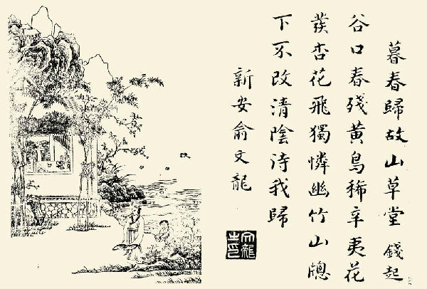 始怜幽竹山窗下,不改清阴待我归。 [译文] 春去匆匆,山窗下的修竹实在幽雅,惹人怜爱;它依旧苍劲葱茏,等待着我的归来。 [出自] 钱起 《暮春归故山草堂》 溪上残春黄鸟稀, 辛夷花尽杏花飞。 始怜幽竹山窗下, 不改清阴待我归。 ![]() 注释: 一说作者为刘长卿 故山:因诗人久居蓝田谷口,心中一直将此地视为故乡,故称“故山”。 草堂:茅草盖的堂屋。 春残:一作“残春”。 黄鸟:即黄鹂、黄莺(一说黄雀),叫声婉转悦耳。 辛夷:即木兰花,一称木笔花,又称迎春花,比杏花开得早。 怜:喜爱。 清阴:形容苍劲葱茏的样子。 溪上:一作“谷口”。 译文: 山谷口已是暮春凋残,黄莺儿的叫声几乎听不到了,迎春花早已开过,只有片片杏花飞落芳尘。春去匆匆,山窗下的修竹实在幽雅,惹人怜爱;它依旧苍劲葱茏,等待着我的归来。 钱起(722—780),字仲文,吴兴(今浙江省湖州一带)人。玄宗天宝十年(751)进士,历任校书郎、考功郎中、翰林学士。有《钱考功集》。 钱起是“大历十才子”之一。诗与刘长卿齐名,称“钱刘”;又与郎士元齐名,称“钱郎”。他长于应酬之作,当时赴外地的官员以得到他的送行诗为荣。 大概他得“才子”的桂冠,也就是这个原因。他的诗技巧熟练,风格清奇,理致清淡。近体诗中,多写景佳句,深为评论家所称道。 赏析: 此诗开篇点题。“谷口”二字,暗示了题中“故山草堂”之所在;“春残”二字,扣题中“暮春”;以下几句都是“归”后的所见所感,思致清晰而严谨。谷口的环境是幽美的,诗人曾说过:“谷口好泉石,居人能陆沉。牛羊下山小,烟火隔云深。一径入溪色,数家连竹阴。藏虹辞晚雨,惊隼落残禽。”(《题玉山村叟屋壁》)春到谷口,更是别具一番景色。然而,此次归来却是“春残时节”,眼前已是黄鸟稀,辛夷尽,杏花飞了。黄鸟,黄莺(一说黄雀),叫声婉转悦耳;辛夷,木兰树的花,一称木笔花,比杏花开得早,所以诗说“辛夷花尽杏花飞”。一“稀”、一“尽”、一“飞”,烘托出春光逝去,了无踪影的一派空寂、凋零的气氛。 然而,在这冷落寂寥的氛围中,诗人都却喜地发现窗前幽竹、兀傲清劲、翠绿葱茏、摇曳多姿,迎接它久别归来的主人。诗人禁不住吟诵出:始怜幽竹山窗下,不改清阴待我归”。“怜”者,爱也。爱的就是它“不改清阴”。“不改清阴”,极其简练而准确地概括了翠竹内在美与外在美和谐统一的特征。“月笼翠叶秋承露,风亚繁梢暝扫烟。知道雪霜终不变,永留寒色在庭前”(唐求《庭竹》)。“咬定青山不放松,立根原在破岩中。千磨万击还坚劲,任你东南西北风”(郑板桥《竹石》)。诗人们讴歌的不都是它“不改清阴”的品格吗!在这首诗中,钱起正是以春鸟、春花之“改”——稀、尽、飞,反衬出翠竹的“不改”,诗人爱的是“不改”,对于“改”持何态度,当然就不言而喻了。 由此可见,诗的一、二句并没有赞美春鸟、春花之意,更没有为它们的消逝而惋惜,而是在感慨它们随春而来,随春而去,与时浮沉,不能自立于世的品性。 “画有在纸中者,有在纸外者”。诗也可以说有在言中者,有在言外者。“始怜幽竹山窗下,不改清阴待我归”,以流水对的形式,用由人及物,由物及人的写法,生动地抒发了诗人的怜竹之意,和幽竹的“待我”之情。在这个物我相亲的意境之中,寄寓了诗人对幽竹的赞美,对那种不畏春残、不畏秋寒、不畏俗屈的高尚节操的礼赞。所以它不仅给人以美的享受,而且它那深刻的蕴涵又给人无穷的回味。前人说:“员外(钱起)诗体格新奇,理致清瞻。文宗右丞(王维)许以高格”(高仲武《中兴间气集》)。或许指的就是这一类诗。