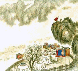 唐 岑参 北风卷地白草折,胡天八月即飞雪。 忽如一夜春风来,千树万树梨花开①。 散入珠帘湿罗幕②,狐裘不暖锦衾薄③。 将军角弓不得控④,都护铁衣冷难着⑤。 瀚海阑干百丈冰⑥,愁云惨淡万里凝。 中军置酒饮归客,胡琴琵琶与羌笛⑦。 纷纷暮雪下辕门⑧,风掣红旗冻不翻⑨。 轮台东门送君去⑩,去时雪满天山路。 山回路转不见君,雪上空留马行处。 ![]()
