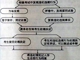 下图是某中学对考试违纪行为处理流程图,请把这个流程图写成一段话