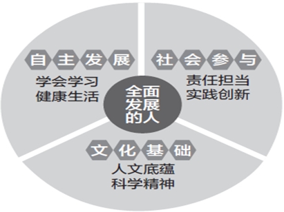 答:中国学生发展核心素养以培养“全面发展的人”为核心,分为文化基础、自主发展、社会参与三个方面,综合表现为人文底蕴、科学精神,学会学习、健康生活,责任担当、实践创新六大素养。(点出“核心”1分,有次序地写出“三个方面”2分,“综合……六大素养”3分。据答题实际评分。)