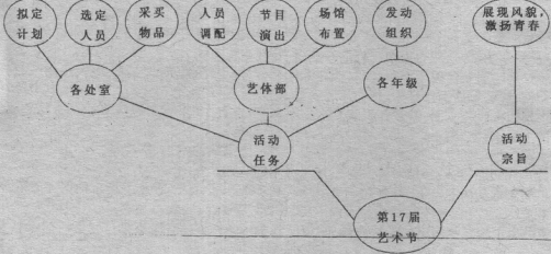 答:某中学第17届艺术节活动以“展现风貌,激扬青春”为宗旨,活动任务如下:各处室负责拟定计划、选定人员、采买物品,艺体部负责人员调配、节日演出、场馆布置,各年级负责发动组织。(层次清晰占2分,表述准确占2分,语言简洁并符合字数要求占2分)