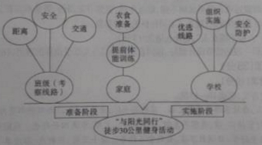 下图是某校“与阳光同行”徒步30公里健身活动的构思框架,写一段话