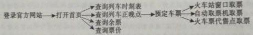 下图是火车票购买流程示意图。请用简洁的语句说明购买车票的整个流程