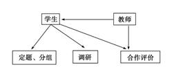 答:在教师指导下,学生按计划完成定题、分组、调研工作,最后学生和教师一起进行合作评价。