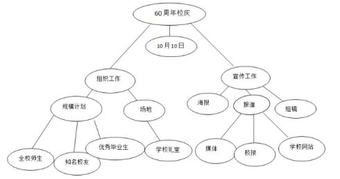 答:60周年校庆”庆祝活动拟于10月10日举行,活动需要组织和宣传。组织工作需要联系学校礼堂,全体师生参加,另需需要邀请知名校友和优秀毕业生参加;宣传工作包括出海报、组稿,并在媒体、校报和学校网站报道。