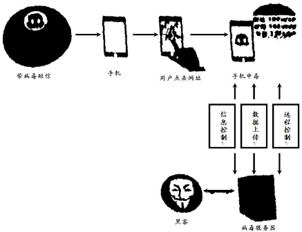 【参考答案】手机用户收到带有病毒的短信并点开其中的连接后,该手机中毒。中毒手机将通讯录上传到病毒服务器,这些个人信息便被黑客掌握。