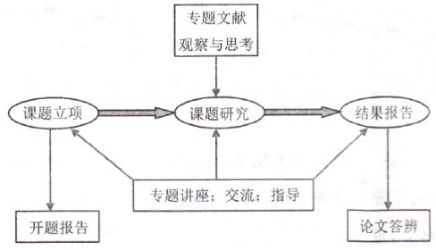 研究性学习分为课题立项、课题研究、结题报告三个阶段,专题讲座、交流和指导贯穿整个过程。第一阶段后须完成开题报告,第二阶段中须研读专题文献进行观察与思考,第三阶段后须完成论文答辩。