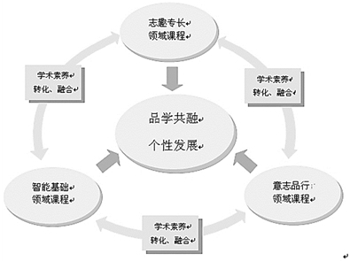 下面是宁波中学“品学共融、个性发展”的学校课程体系示意图,请把下图撰写成一段文字介绍