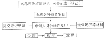 ![]() 【答案】如有必要,申请人可先到管理机构进行名称预先核准登记;再正式办理各种前置审批,提交登记申请、身份证复印件和经营场所等材料;管理机构受理后进行审核,核准后即可发照。整个流程须在7个工作日内完成。 【解析】 【详解】本题考查图文转换。本题为流程图,解题方法为:1、解读时先确定叙述顺序。2、方框里的词语不能被遗漏。3、注意箭头走向,不能违背这一顺序(如本题总体顺序为名称预先核准登记-办理前置审批-提交审批所需材料-审核-发照)。4、若横线上出现词语,属于概念间(环节间)发生关系的方式,不能遗漏。5、适当增补字词以便衔接连贯。如提交材料环节有三个方框,可表述为提交登记申请、身份证复印件和经营场所等材料;审核环节需要管理机构先受理。所以办理个体工商户营业执照流程图可以表述为:如有必要,申请人可先到管理机构进行名称预先核准登记;再正式办理各种前置审批,提交登记申请、身份证复印件和经营场所等材料;管理机构受理后进行审核,核准后即可发照。整个流程须在7个工作日内完成。 |