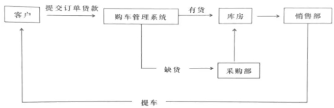 答:汽车销售公司的销售流程是:客户提交订单贷款给购车管理系统,系统进行查询,有货则通知库房给销售部发货,销售部通知客户提车;缺货,则通知采购部采购,采购货品进库房后按照上述流程进行。