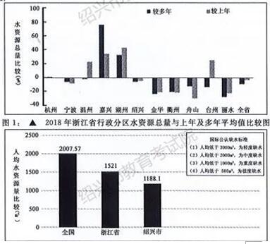 结论1:2018年绍兴市人均水资源拥有量低于全国、全省平均水平,根据国际公认缺水标准,绍兴属中度缺水地区。