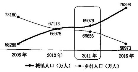 表一  2006-2016年中国城镇与乡村人口数量变化