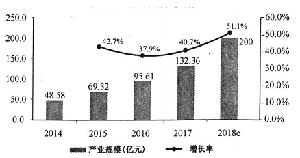 B.根据材料二可知,中国人工智能产业在2018年将会掀起一个发展新高潮,预计产业规模将达到200亿元,预计增长率将超过50%。