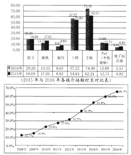 (2008年至2016年手机阅读接触率表)