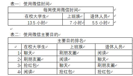 表二:使用微信主要目的