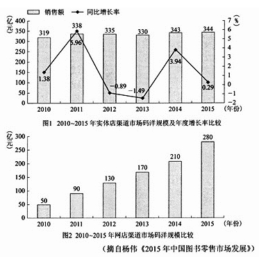 A. 2015年,中国图书零售市场主要有实体书店和网店两大渠道,其中实体书店渠道市场码洋规模达到344亿元,网店渠道达到280亿元。