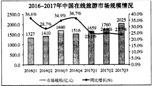 A.根据材料二可知,2016和2017两年各季度在线旅游市场规模总体呈现出缓慢增长的趋势,而同比增长率有升有降。