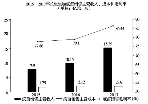 C.根据图二可知,2017年长生生物疫苗销售主营收入相较上一年大幅提高,这也使2017年疫苗销售毛利率达到最高值86.44%。