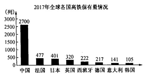 B.材料二图表数据显示.2017年我国高铁保有量为2700列,比法国、日本等其他国家的高铁保有量总和还要多。