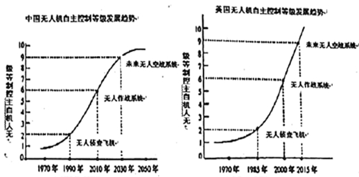 C. 材料四中的图表,将中国和美国的无人机自主控制等级发展趋势进行对比,也直观地反映出两国在无人机某些性能上的差距。