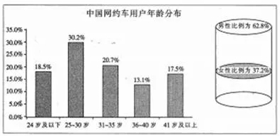 B.据统计,中国网约车用户中,男性比女性人数要多,35岁以下人群是网约车的主力军,占三分之二以上。