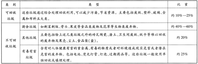 依据《生活垃圾分类制度实施方案》,中国生活垃圾分类情况见下表。
