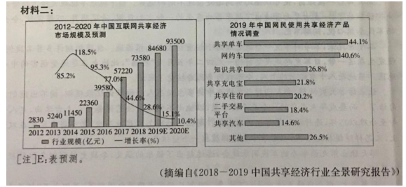C. 从材料二可看到,我国互联网共享经济市场行业规模虽不断扩大,但其增长率自2013年开始一直呈现下滑趋势。