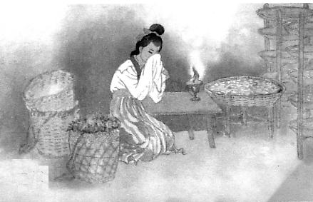 一个住在乡下的、以养蚕为生的妇女,昨天到城市里去赶集并且出售蚕丝。回来的时候,她却是泪流不断,伤心的泪水甚至把手巾都浸湿了。因为她在都市中看到,全身上下穿着美丽的丝绸衣服的人,根本就不是像她这样辛苦劳动的养蚕人!