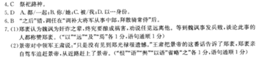 7.答案D.省略了四处成份: (郑袤)征拜侍中,百姓恋慕(郑袤), (百姓)涕泣(于) 路隅;A.两处: (郑袤)随叔父浑避难(于)江东; B两处: 讽名重(于)当世,袤同郡任览与(魏讽)结交 ; C两处:自昔(毌丘俭)建勋(于)幽州,志望无限。