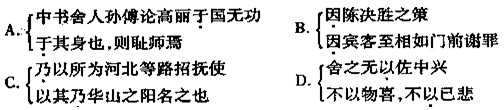 10.A(两个“于”均为介词,相当于“对”。 B项前一个“因”是介词“趁机”后一个“因”是介词“通过、经由” C项前一个“乃”是连词“于是”后一个“乃”是副词,起帮助判断的作用,可译为“是” D项前一个“以”是介词“用来”,后一个“以”是介词因为”)