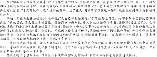 B.吴表臣公平公正。吴表臣在通州任职时,有个叫盛章的因事与一武官发生矛盾,吴表臣不顾他人劝说,审问盛章,最终公正处理了此事。