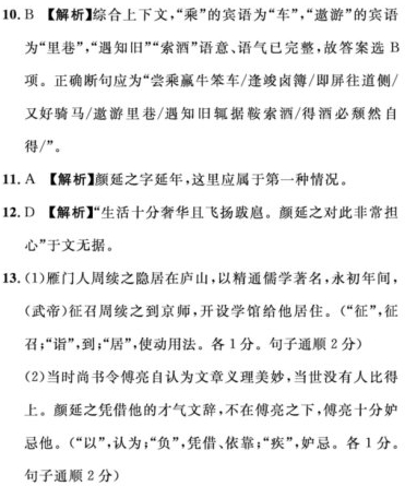 12、D 生活十分奢华且飞扬跋扈,颜延之对此非常担心 于文无据