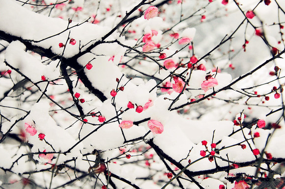 “雪满山中高士卧”,梅花到底还是来到了人间,不过,它们既然是夙具仙骨,当然也不屑在尘埃之中生长;远离人迹的烦嚣,栖住到大雪铺满的深山,这,才是这位孤高拔俗的隐士的愿望。常人说到梅花,总不免提什么“傲霜斗雪”,其实,梅花又何尝逞勇好斗?雪满山中,它们却稳稳地酣卧,何尝把大雪放在心上?大雪又怎配做它们的对头?“月明林下美人来”,梅花到底是花的一种,是世人愿意亲近的美人,不过,这美人既然是仙子下凡,俗人当然不能轻易窥到,若去闹市中寻觅,无异于水中捞月。你须得摒弃一切俗念,退身到清风明月的林泉之下,那时,你才能见到她款款而来,神情是那么超朗闲雅,容貌是那么清秀动人,一如《世说新语》中的咏絮才女谢道蕴,“神情散朗”,有“林下风气”。