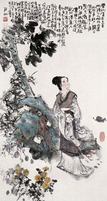 ⒂纨(wán)扇题诗:纨扇,细绢制成的团扇。班彪之姑班婕妤,有才情,初得汉成帝宠爱,后为赵飞燕所谮,退处东宫。相传曾作《怨歌行》:“新裂齐纨素,皎洁如霜雪。裁为合欢扇,团团似明月。出入君怀袖,动摇微风发。常恐秋节至,凉风夺炎热。弃捐箧笥中,恩情中道绝。”这种被弃女子的慨叹,称为婕妤之叹或婕妤之悲。