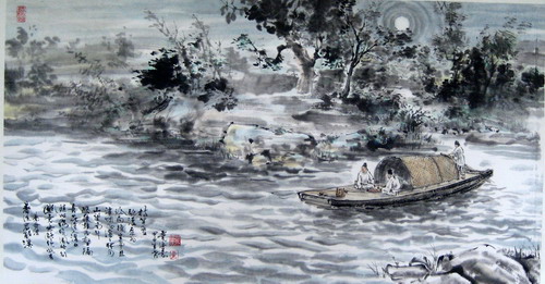全诗扣紧题目中的”泛“字,在曲折回环的扁舟行进中,对不同的景物进行描摹,使寂静的景物富有动感。[6]殷璠说綦毋潜”善写方外之情“(《河岳英灵集》)。作者超然出世的思想感情给若耶溪的景色抹上一层孤清、幽静的色彩。但是,由于作者描写的是一个春江花月之夜,又是怀着追求和满足的心情来描写它,因而这夜景被状写得清幽而不荒寂,有一种不事雕琢的自然美,整首诗也就显得”举体清秀,萧肃跨俗“(《唐音癸签》引殷璠语),体现出一种兴味深长的清悠的意境。在写法上,诗人紧扣住题目中一个”泛“字,在曲折回环的扁舟行进中对不同的景物进行描写,因而所写的景物虽然寂静,但整体上却有动势,恍忽流动,迷蒙缥缈,呈现出隐约跳动的画面,给人以美的感受。