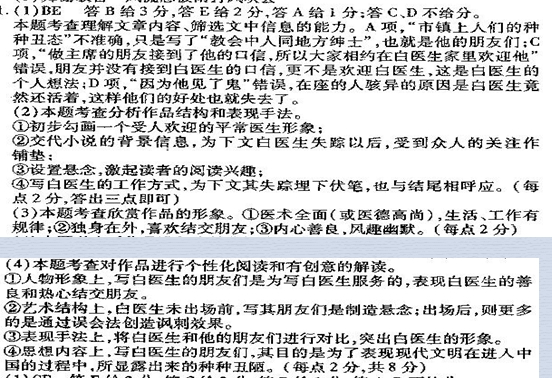 (4)作品为什么以较多的篇幅来写白医生的朋友们?请结合全文谈谈你的看法。(8分)
