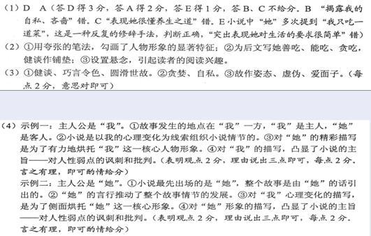 (3)小说刻画了“她”怎样的性格特点?请简要分析。(6分)