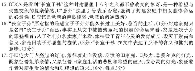 16.作者在文中多次提到“长宜子孙”四个字,结合文章内容,谈谈你对这几个字含义的理解。(4分)