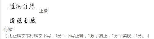 (用正楷字或行楷字书写,1分;书写正确,1分;端正,1分;美观,1分。)