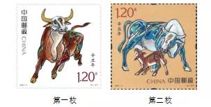 中国邮政于2021年1月5日发行《辛丑年》特种邮票一套2枚,第一枚名为“奋发图强”,第二枚名为“牛年大吉”。