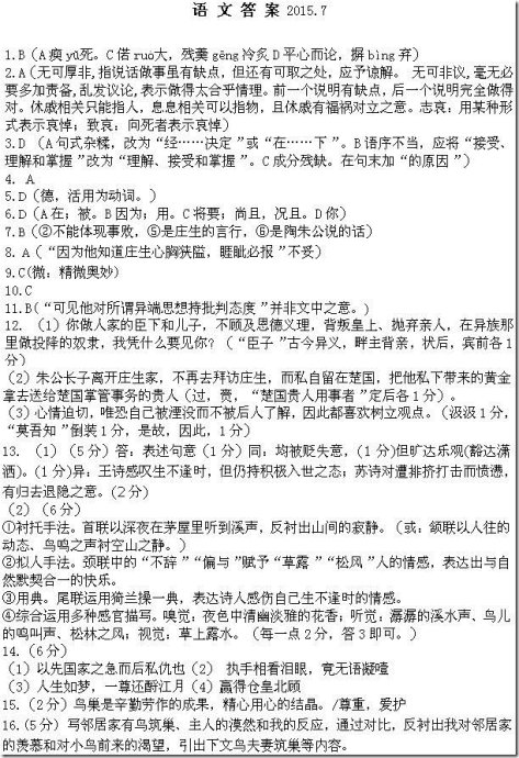 重庆市第一中学2014-2015学年高二下学期期末考试语文试题及答案(3)