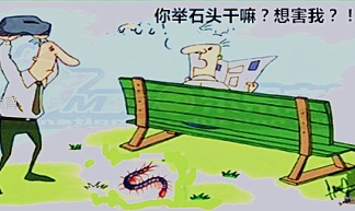 21.阅读下面这幅漫画,然后说明画面内容并概括其寓意。(5分)