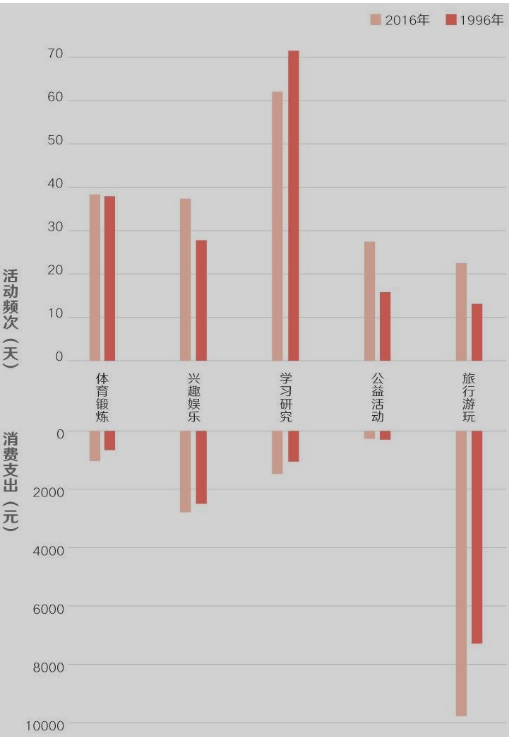 2016与1996年北京市居民人均休闲活动频次、消费支出对比