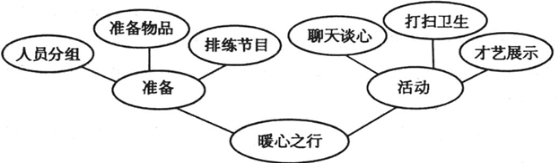21.下面是某某班“暖心之行”——重阳节敬老院活动的构思,请你把它写成一段话,要求内容完整,表述准确,语言连贯,不超过120字。(6分)